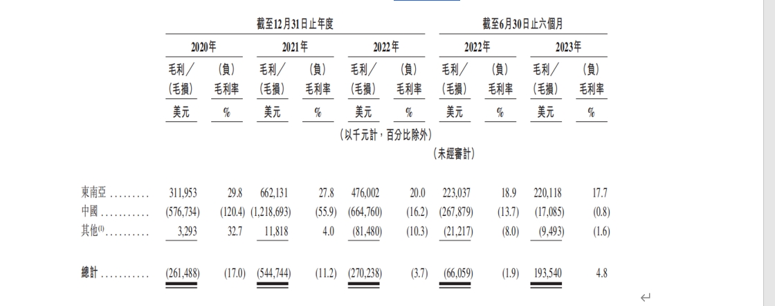 各區(qū)市場(chǎng)毛利(毛損)與毛利率(毛損率),圖源招股書