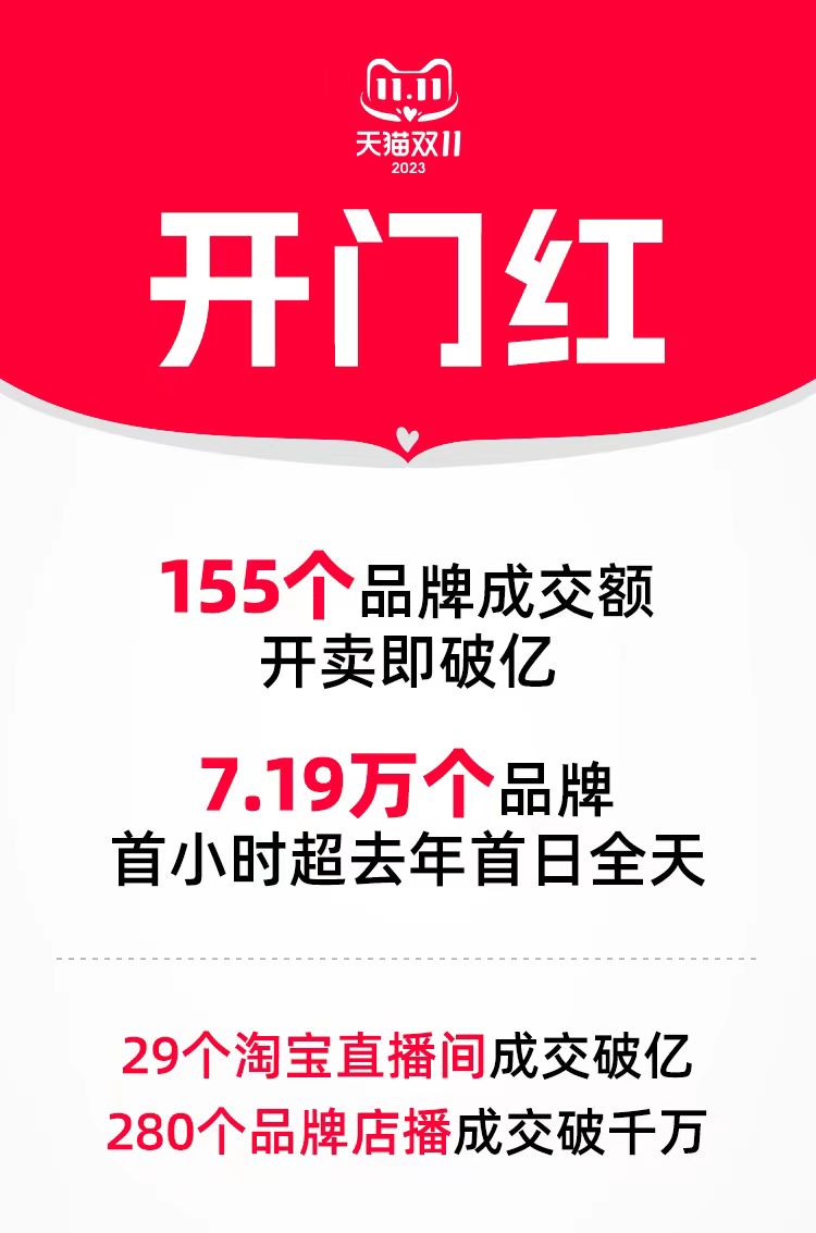 155個(gè)品牌開賣即破億,天貓雙11首小時(shí)7萬個(gè)品牌成交超去年全天