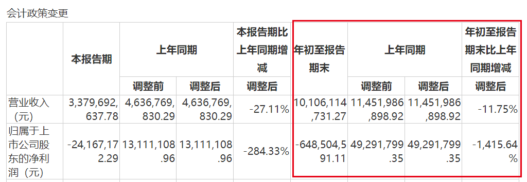 在10月20日發(fā)布的2023年三季報中,龍大美食今年前三季度實現(xiàn)營業(yè)收入101.06億元,同比下滑11.75%;歸母凈利潤虧損6.49億元,同比下跌1415.64%。