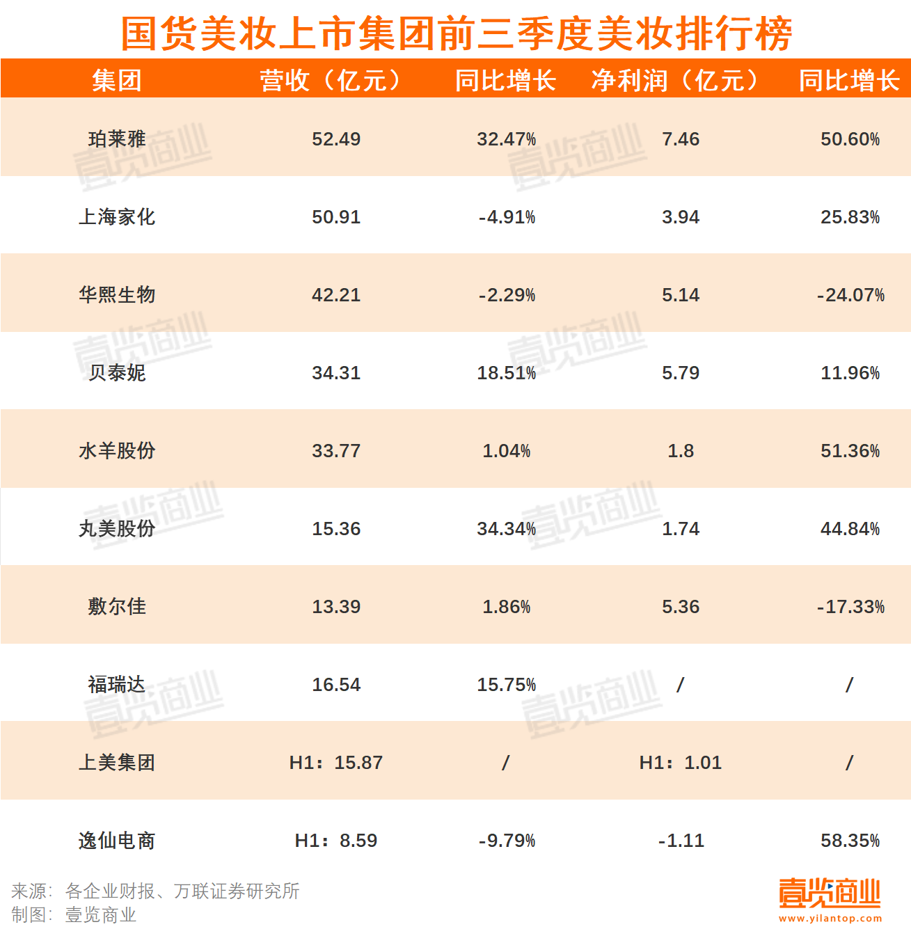 壹覽商業(yè)統(tǒng)計(jì)10家國(guó)貨美妝上市企業(yè)的最新數(shù)據(jù)發(fā)現(xiàn),前三季度,包括未披露三季度季報(bào)的上美集團(tuán)及逸仙電商在內(nèi),依然有5家企業(yè)完成了營(yíng)收及凈利潤(rùn)雙增長(zhǎng)。