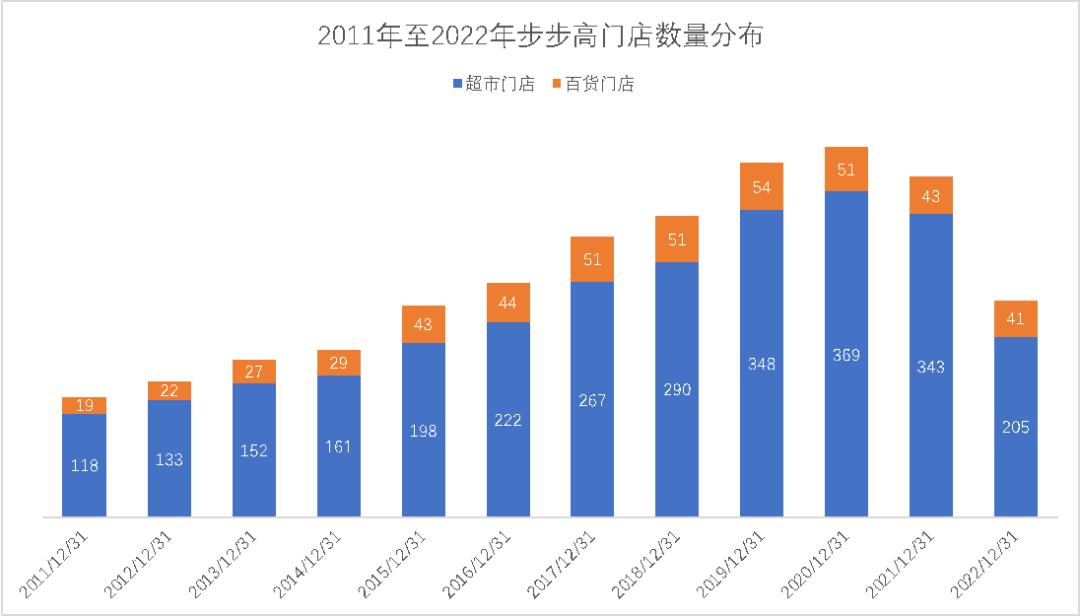 步步高2017年-2022年超市及百貨業(yè)態(tài)面積 制表:乾行