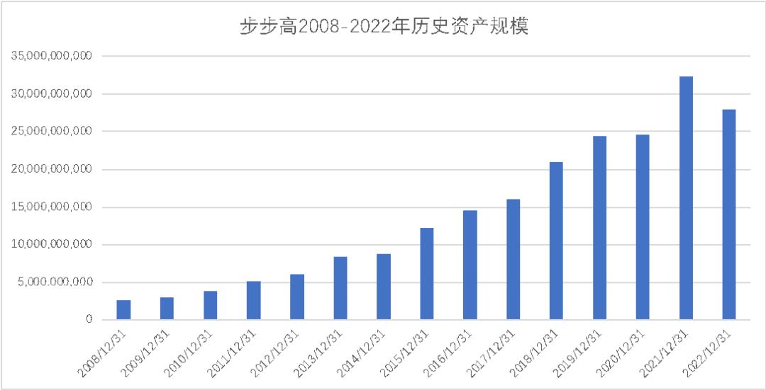 2008年-2022年步步高歷史資產(chǎn)規(guī)模 制圖:乾行