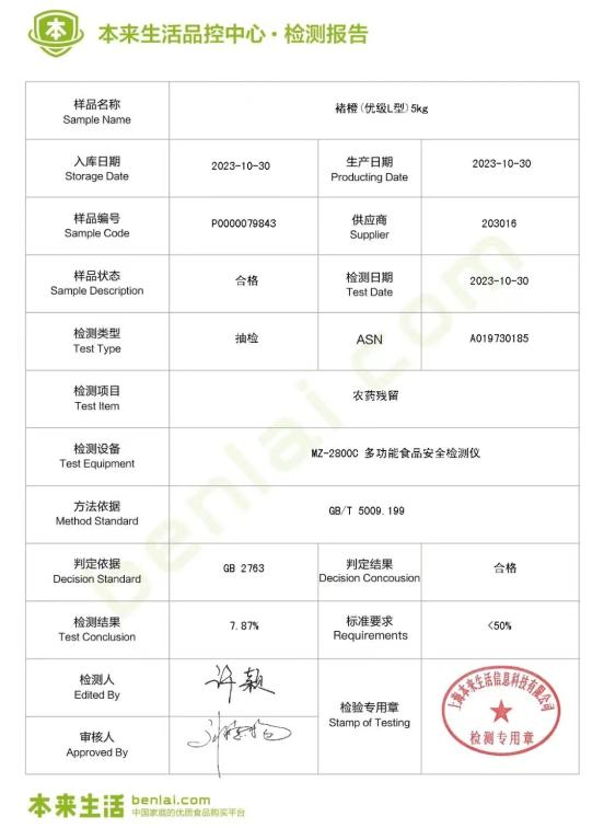 *本來(lái)生活A(yù)PP在售褚橙,用戶可一鍵查看商品檢測(cè)報(bào)告