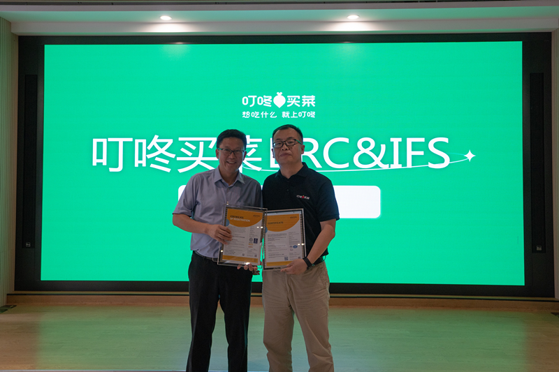 圖:第三方認(rèn)證機(jī)構(gòu)向叮咚買(mǎi)菜頒發(fā)BRC&IFS雙證