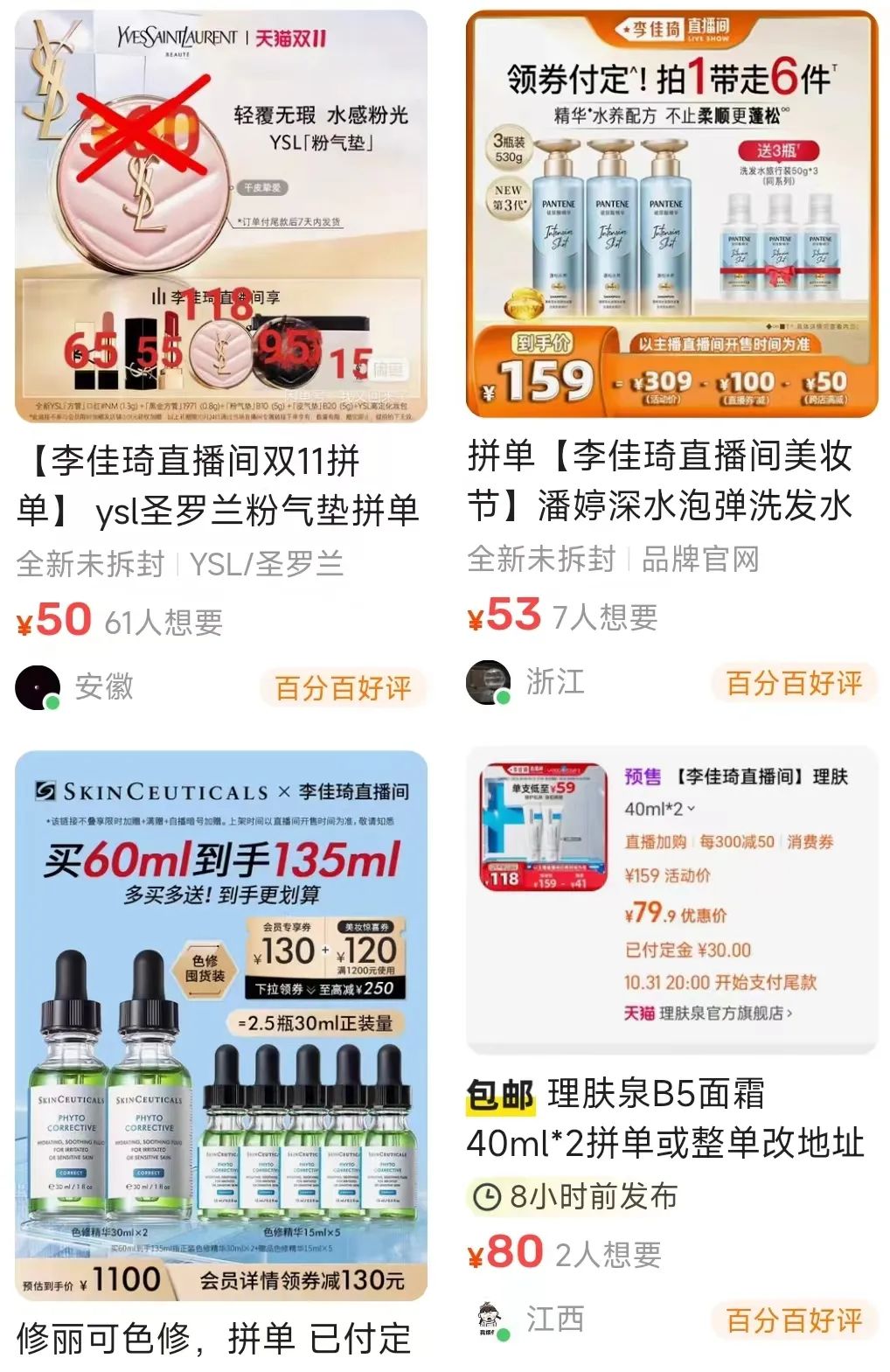 這點在美妝護膚領域尤其明顯。事實上,從10月24號預售開啟后,閑魚、豆瓣等平臺就已經(jīng)鋪滿了雙11拼單的帖子,有的賣家還沒下單,就先找拼單和收贈品的買家。