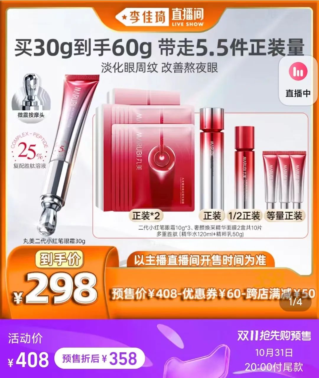 造成這種現(xiàn)象的原因也顯而易見,就是雙11的促銷方式發(fā)生了變化。從過去的“全場5折”、“滿500-100”,變成了“買30ml送30ml”、“買二到手十件”,如今直播間里的風氣,是商品不再會打折,而是通過購買正裝送贈品或小樣的方式,來營造大促氛圍。
