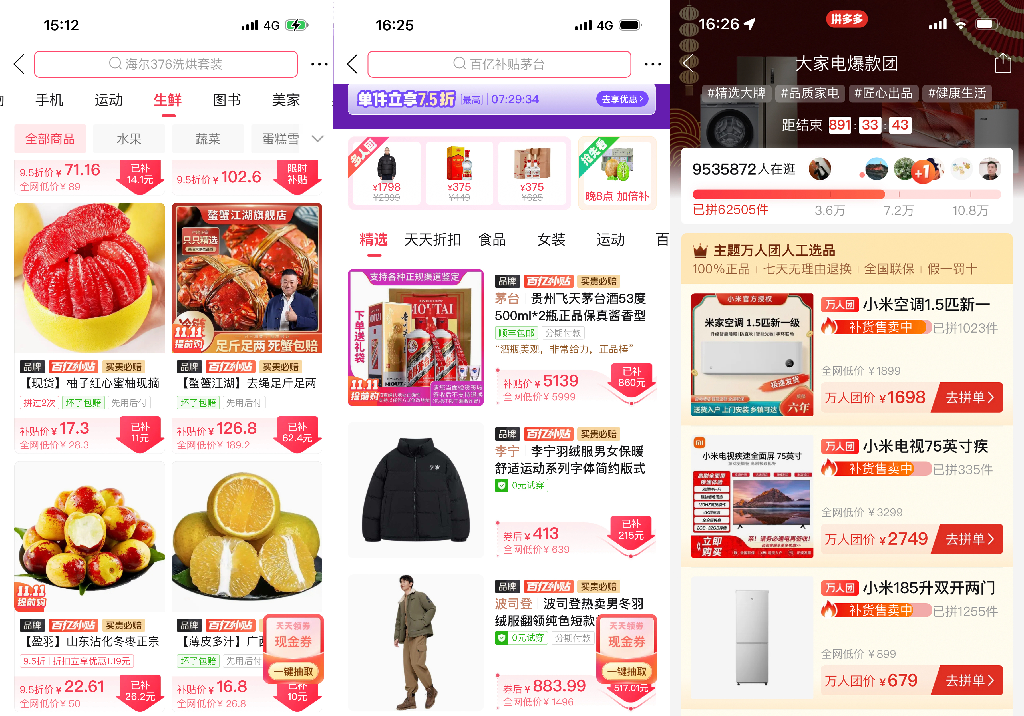 今年雙十一,拼多多百億補貼通過“單件立減”“天天折扣”等活動,為消費者提供雙重降價福利,并推出了買貴必賠、降價補差等服務,確保消費者能以最簡單、最放心的方式一站購齊最實惠的優(yōu)質好物。據(jù)了解,大促期間,拼多多百億補貼用戶規(guī)模突破了6.2億。