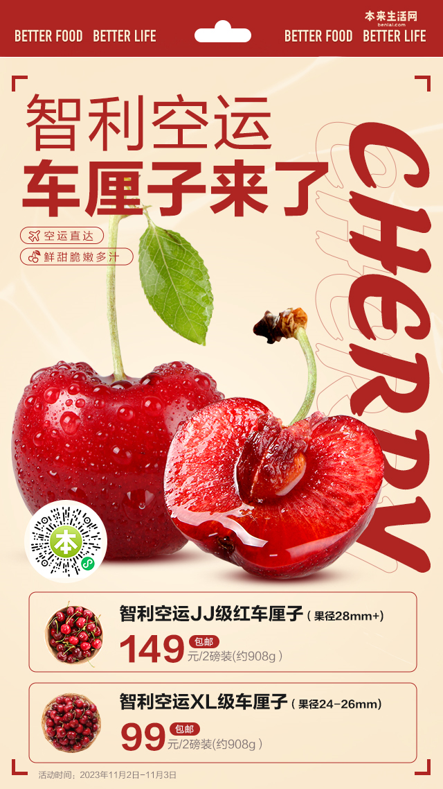 雙11生鮮狂歡節(jié)期間,本來生活網(wǎng)也為搶“鮮”而來的智利車厘子奉上特惠“早鳥價”,鮮甜暖心不容錯過。預售訂單將于11月中下旬陸續(xù)從全國各大倉發(fā)貨。