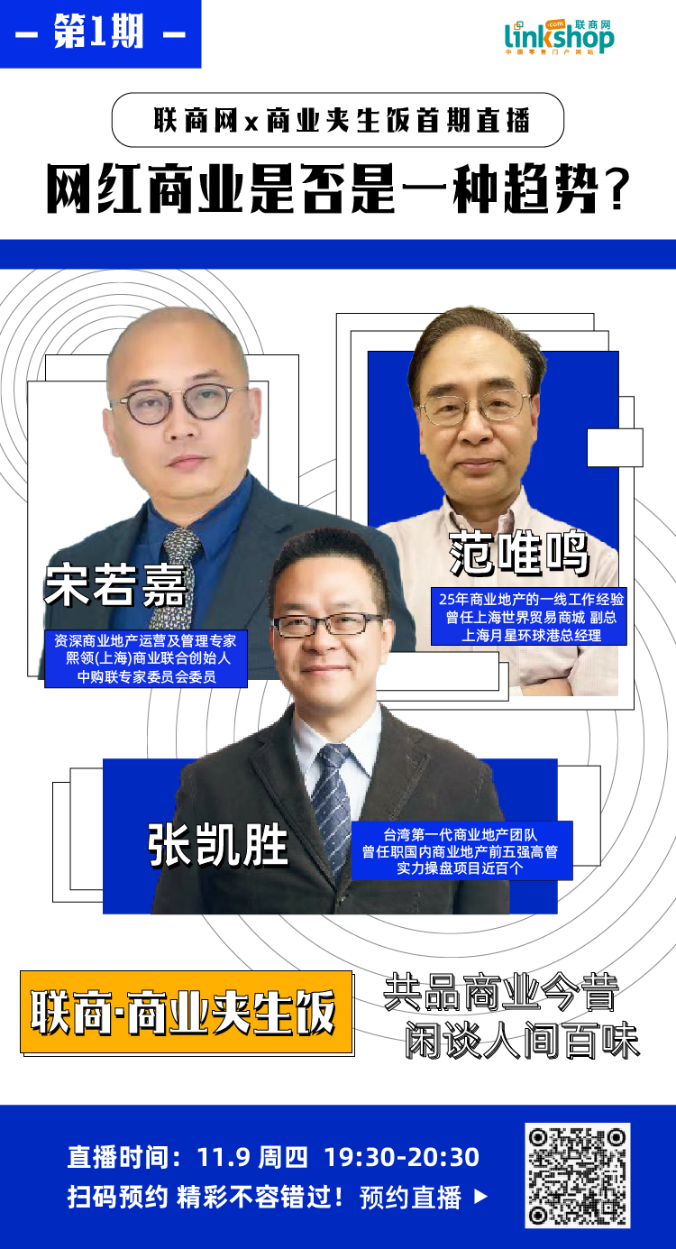 11月9日晚上7點(diǎn)半,聯(lián)商·商業(yè)夾生飯的首期節(jié)目(同時(shí)也是商業(yè)夾生飯第二十二期節(jié)目)將于聯(lián)商網(wǎng)官方微信視頻號(hào)上重磅登場(chǎng)。據(jù)悉,本期節(jié)目探討話題是“網(wǎng)紅商業(yè)是否是一種趨勢(shì)?”,三位老師將分別給出怎樣的見(jiàn)解?讓我們一起來(lái)期待!