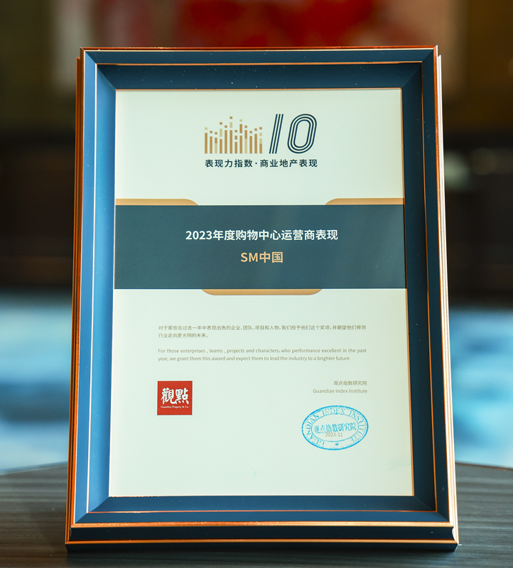 SM中國榮登2023年度購物中心運營商表現(xiàn)榜單