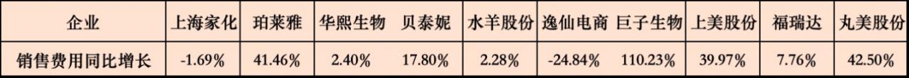 以美妝為例,今年上半年,國貨美妝品牌的銷售費(fèi)用幾乎普遍增長。在2023年上半年,國內(nèi)美妝上市企業(yè)營收前十排名中,有8家企業(yè)銷售費(fèi)用同比上漲,其中巨子生物漲幅最多,達(dá)110.23%。