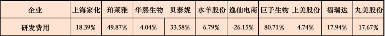 在研發(fā)費(fèi)用的投入上,各美妝企業(yè)同樣毫不吝嗇。