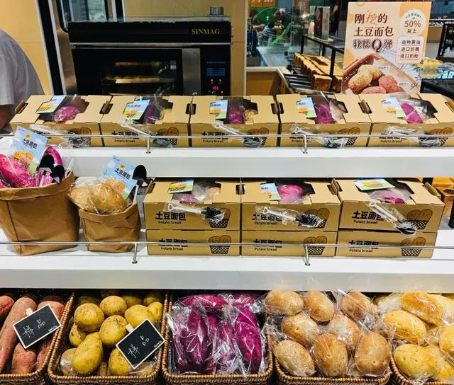 比起接地氣的餐飲服務(wù),更出圈的品類是烘焙——從瑞士卷到土豆面包,商超烘焙更平價、更網(wǎng)紅。