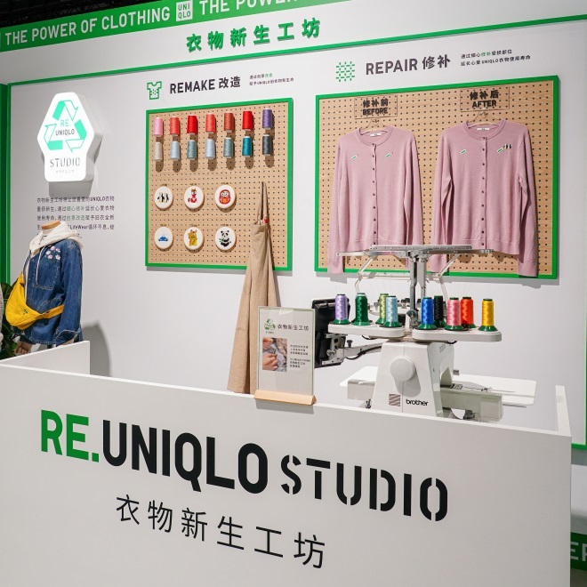 為了持續(xù)打造循環(huán)型業(yè)務(wù)模式,今年4月,優(yōu)衣庫中國首家RE.UNIQLO衣物新生工坊落地上;春V新啡蚱炫灥,提供repair衣物修補(bǔ)和remake創(chuàng)意改造兩大服務(wù),通過創(chuàng)意刺繡,煥新舊衣服,延長衣物生命周期,讓LifeWear服裝被更持久地穿著,最終實(shí)現(xiàn)無廢棄衣物的社會(huì)。在第六屆進(jìn)博會(huì),RE.UNIQLO衣物新生工坊首次亮相,為大家全方位展示了愛衣的另一種可能,幫助輕松踐行低碳的生活方式。