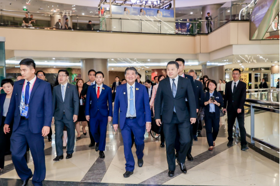 泰國副總理兼商務部長普坦·衛(wèi)查亞猜(MR. PHUMTHAM WECHAYACHAI)、泰國內政部社區(qū)發(fā)展 廳副廳長 瓦隆·翔蒙(MR. WARONG SANGMUANG)等一行領導