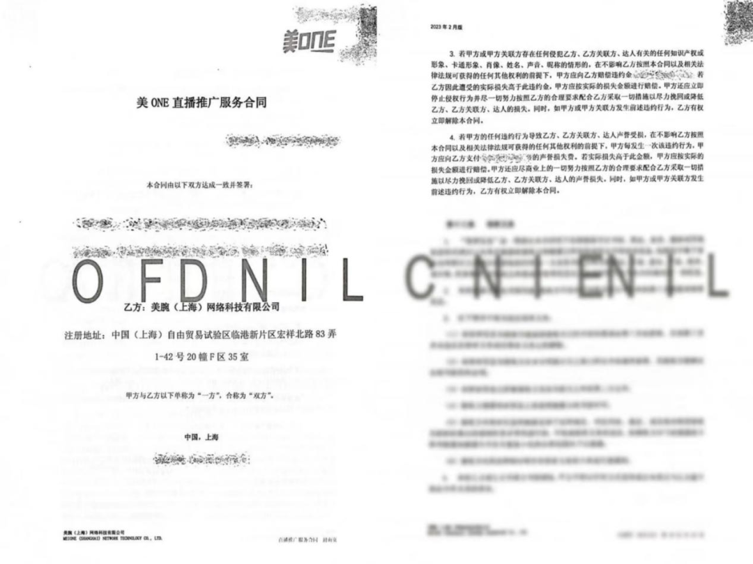 「京東采銷喊話李佳琦」事件中,提到品牌與李佳琦簽署了「底價協(xié)議」,違反協(xié)議即賠償巨額違約金。雖然美ONE和海氏都否認(rèn)了「底價協(xié)議」的存在,但網(wǎng)絡(luò)很快流傳出一份美ONE和品牌方的協(xié)議。