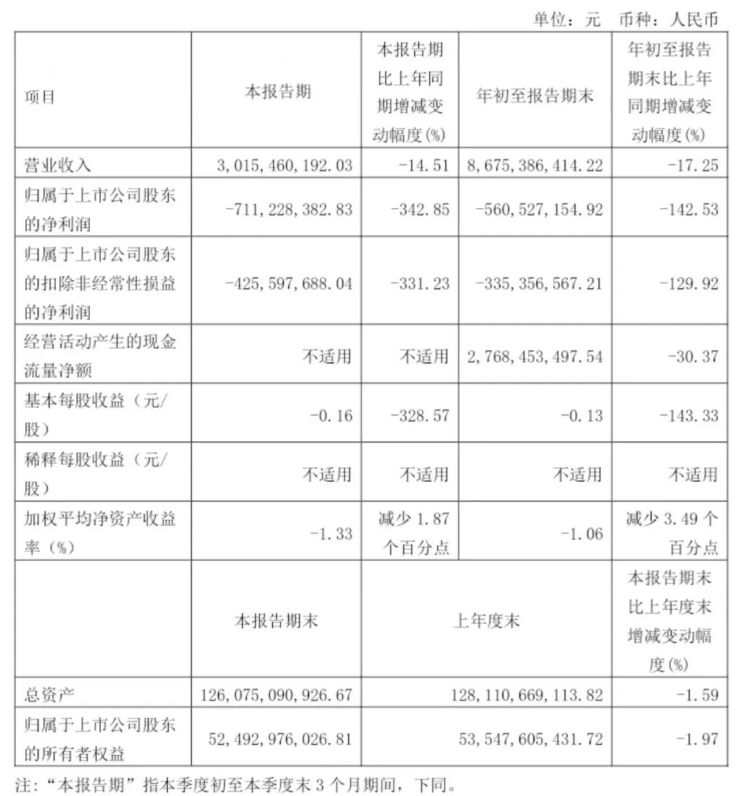 但在歸母凈利潤上,第三季度內(nèi),7.11億元的虧損,直接讓這個數(shù)據(jù)比去年同期減少了342.85%。而其第一季度1.46億元和第二季度481.94萬元的利潤雖然同比去年下滑明顯,但至少保持在正值。