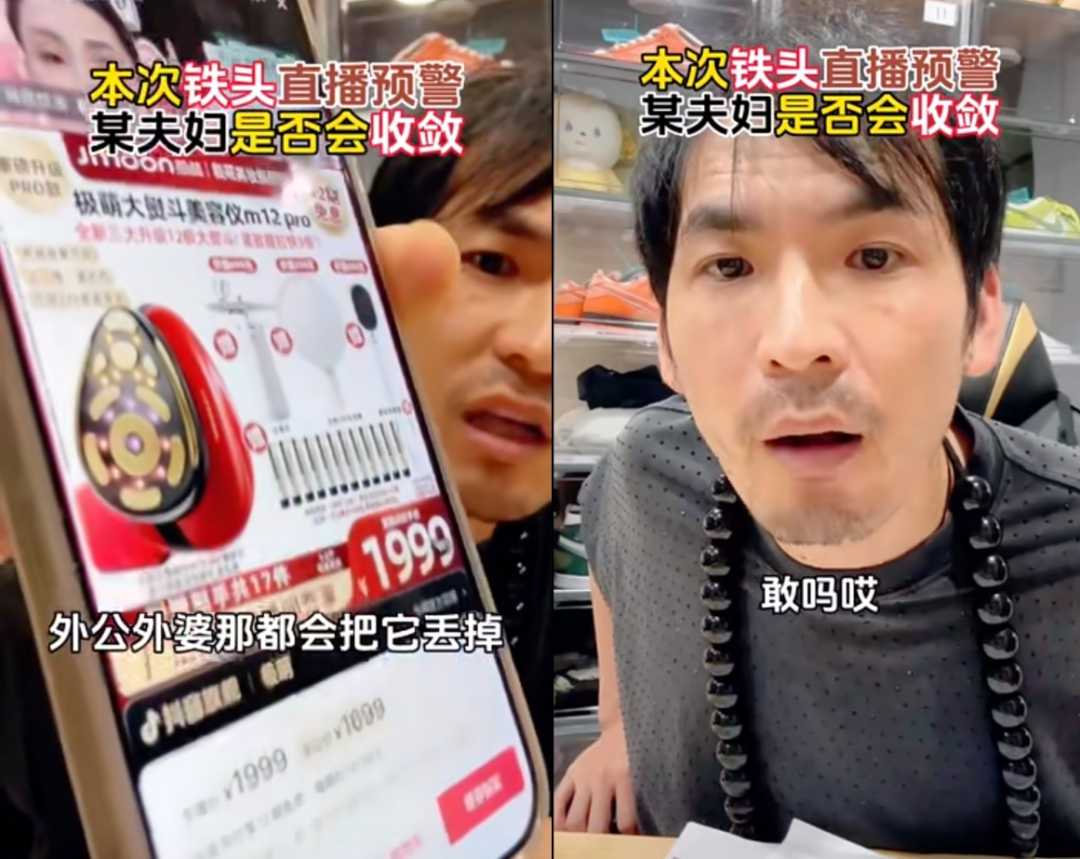 在近期的打假網(wǎng)紅鐵頭的一場直播中,直接在直播間公開喊話廣東夫婦,質疑其所賣的某品牌美容儀宣傳的射頻能量為皮膚真皮層的3.6毫米,提拉全臉,淡化法令紋眼角紋抬頭紋魚尾紋功能,并無效果。氫消費注意到,在鐵頭直播中,所展示的美容儀,品牌名稱為極萌。