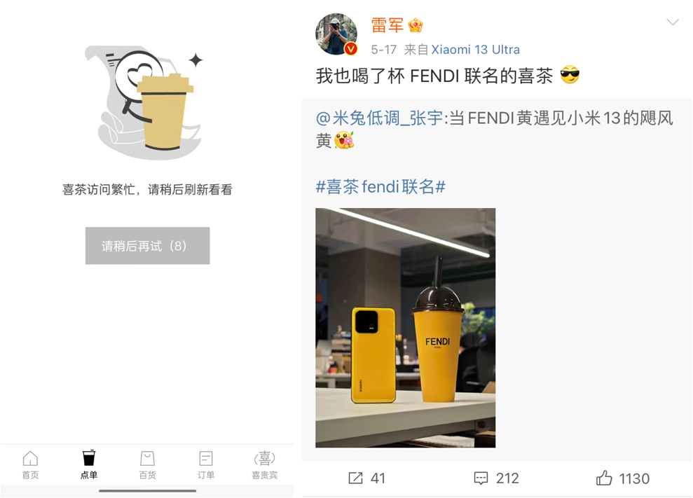 圖源喜茶小程序與雷軍微博
