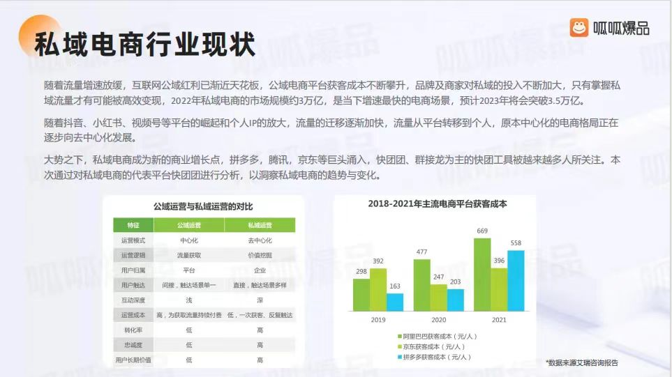 私域電商的成本優(yōu)勢在于,它沒有公域和直播所需的坑位費和流量費,低價邏輯更為直觀。另一方面,比起社區(qū)團購需要大批前置倉的重模式,社群團購更加輕便靈活,相應的投入成本也較低。