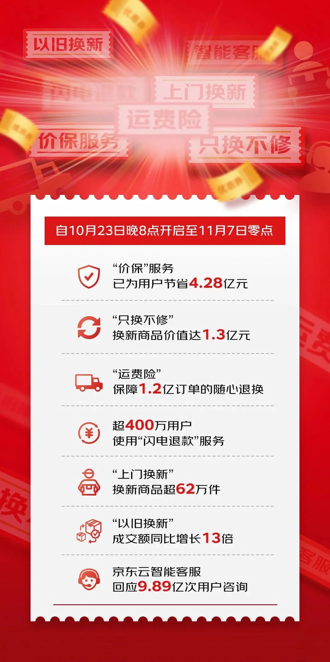 京東最新披露的數(shù)據(jù)顯示,自10月23日晚8點(diǎn)至11月7日零點(diǎn),“一鍵價(jià)保”更是已為用戶節(jié)省4.28億元。