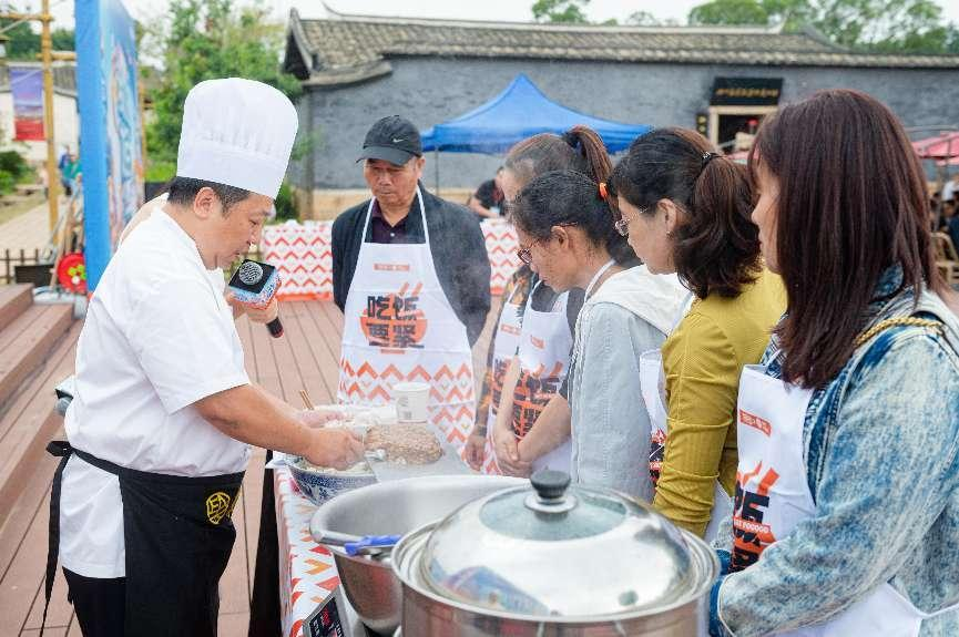 林汶在龍民百家宴現(xiàn)場(chǎng)教授魚(yú)丸肉燕做法