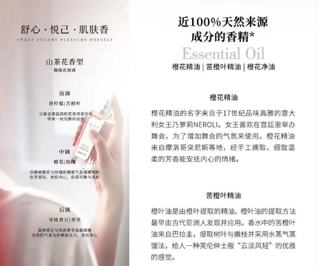 再是困惑,這款山茶花香水為啥叫山茶花。根據(jù)官方介紹,此香水的前中后調(diào)共有6種成分,分別是香檸檬、苦橙葉、橙花、玫瑰、零陵香豆和香草,左看右看似乎和“山茶花”都沒什么關(guān)系,難道這就是【香水界的皇帝新衣】。