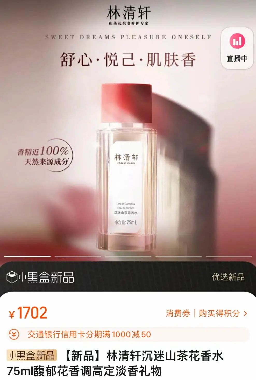 打造氛圍感。香水的包裝是山茶花的紅色系,名字又主打這個成分,佐以宣傳視頻里紅唇美女和柔和燈光,仿佛一朵盛開的山茶花。再加上鋪天蓋地的罵名,如今林清軒把價(jià)格砍半限時(shí)5折出售,這款香水在小程序已經(jīng)賣了400多件。