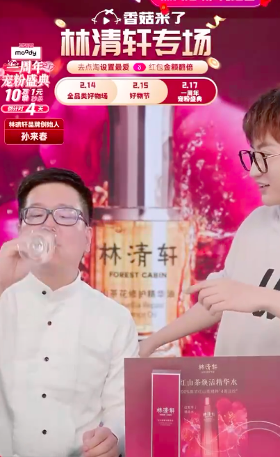 為了護(hù)住這個大icon,孫來春在去年公開炮轟香奈兒不當(dāng)競爭:“挖走了部分員工,并高調(diào)宣布進(jìn)入紅山茶花油賽道”;并在今年的情人節(jié)期間,直接在直播間豪飲軒山茶花精萃水,只為證明“成分天然純粹”。
