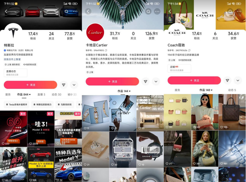 一方面,快手平臺(tái)的高端化夢(mèng)想和快手的頭部大主播們的低價(jià)標(biāo)簽相沖突,這使得快手接連碰壁。另一方面,快手曾經(jīng)重點(diǎn)引進(jìn)的卡地亞、特斯拉等品牌,意圖拉攏高端消費(fèi)人群,誰(shuí)曾想這些品牌粉絲數(shù)量經(jīng)過(guò)3年時(shí)間積累,仍停留在幾十萬(wàn)的量級(jí),這個(gè)數(shù)據(jù)甚至比不上一個(gè)普通的腰部網(wǎng)紅。