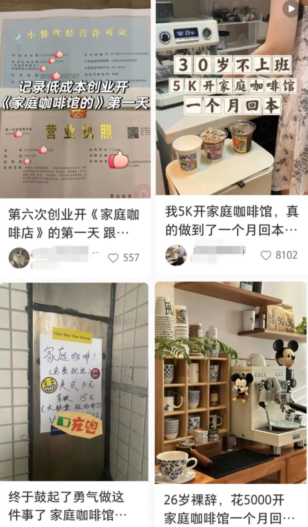 距離深圳1300公里,稍早于李楠楠,杭州的張瑩在2022年底選擇結(jié)束“朝九晚五”的會(huì)計(jì)生活,并因?yàn)橄矚g喝咖啡也選擇了家庭咖啡館創(chuàng)業(yè),當(dāng)然背后的主因也是“成本更低”,“租一間向陽的工作室,2-4萬元就能開一間咖啡館!
