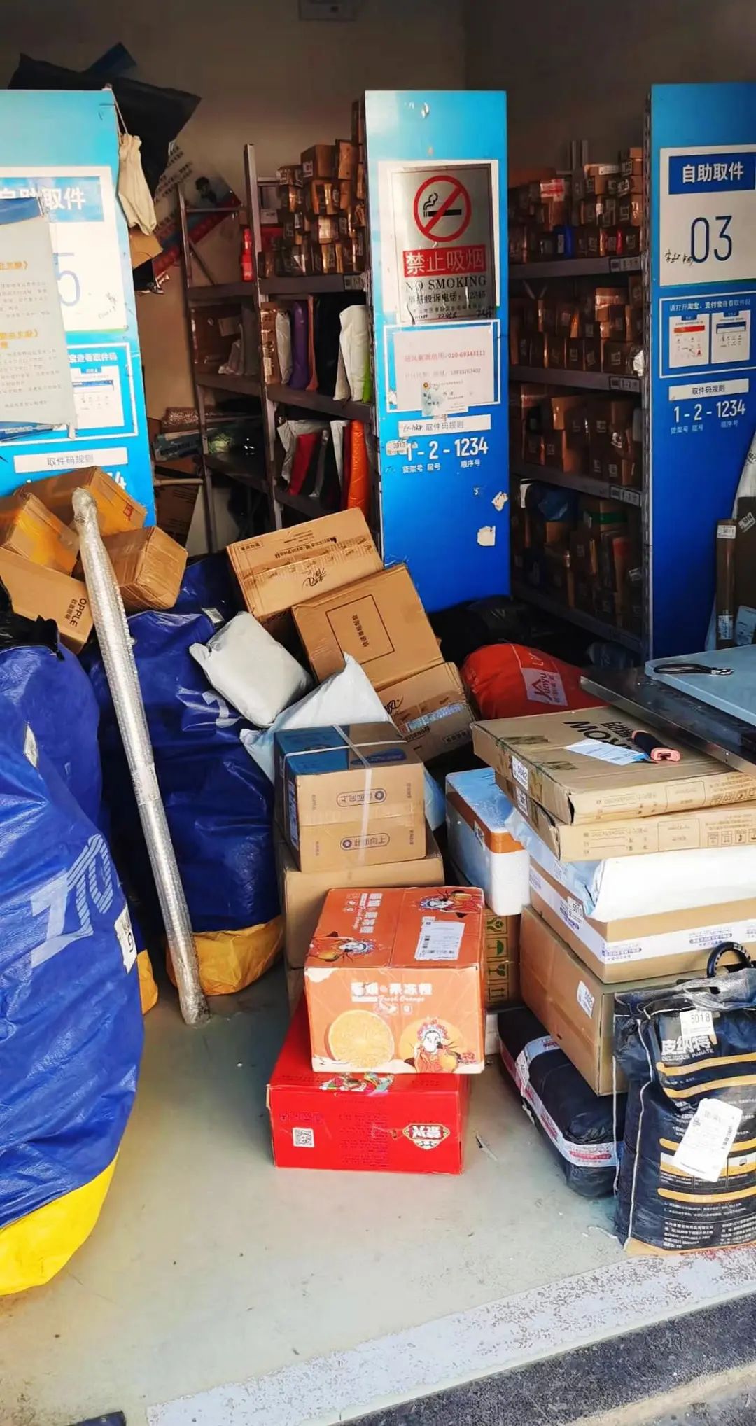 堆滿快件的菜鳥(niǎo)驛站。圖源:作者拍攝