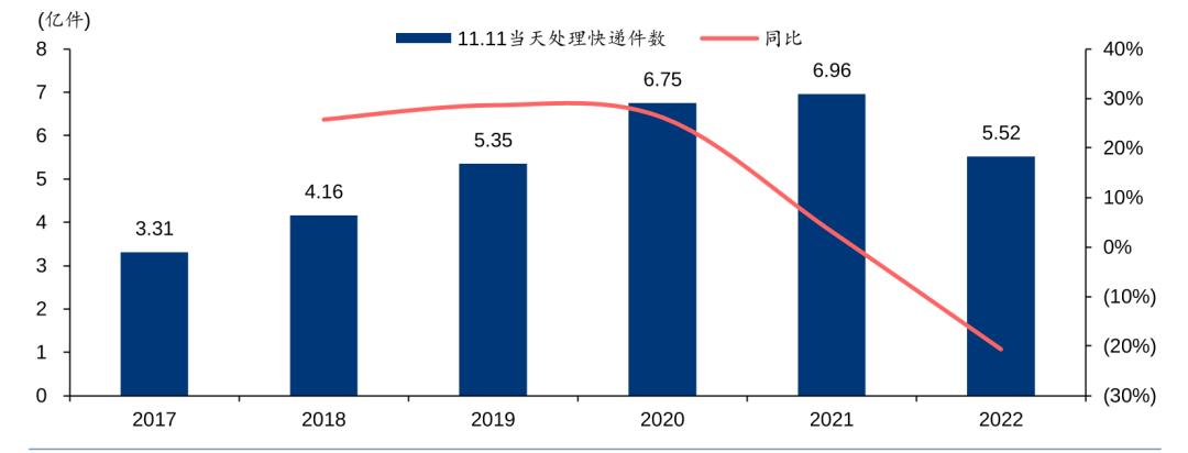 2022 年雙十一當(dāng)天處理快遞件數(shù)同比回落