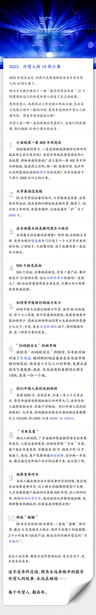 這些外貿新世代的故事,聽上去像“天方夜譚”,但在數字外貿真牛獎現場,他們總結分享的數字外貿方法論,讓在場不少有十幾年從業(yè)經驗的“外貿老炮”都直呼“內行”。