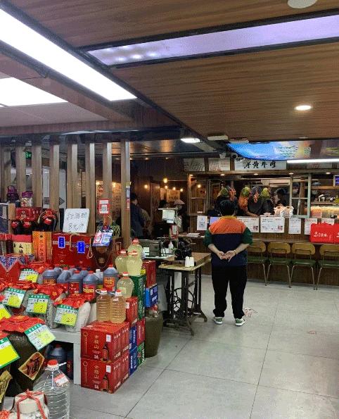 該門店面積約30平,占據(jù)了菜市場的一個檔口,和其它鹵肉、酒類等檔口為鄰。旁邊就是各種蔬菜攤兒,十足的煙火氣。