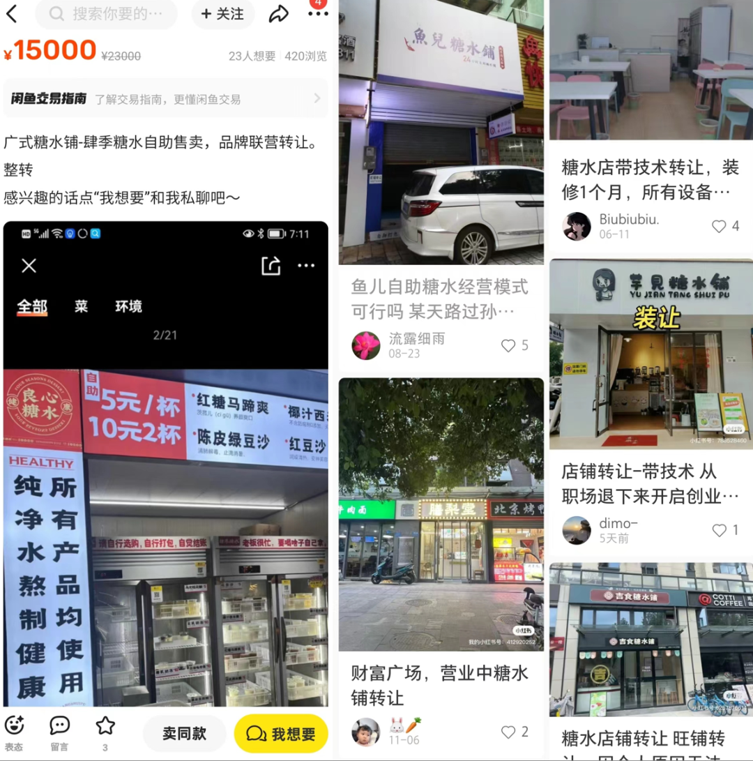 但現(xiàn)在茶飲淡季剛至,在二手平臺上,已經(jīng)有一批自助糖水鋪的轉(zhuǎn)讓設(shè)備帖子,悄咪咪冒了出來。