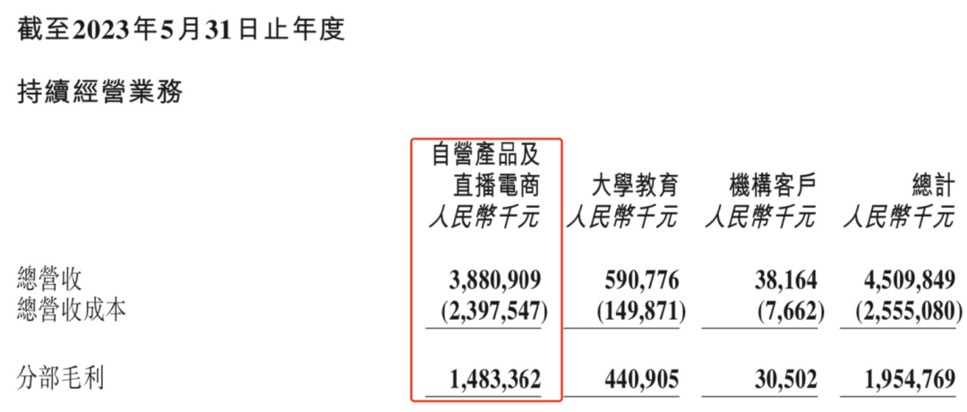 結(jié)合東方甄選最新財(cái)務(wù)數(shù)據(jù)來看,2023財(cái)年(2022年6月1日-2023年5月31日)東方甄選自營產(chǎn)品及直播電商業(yè)務(wù)的總營收39億元,其中自營產(chǎn)品總營收超過26億元,毛利15億元。