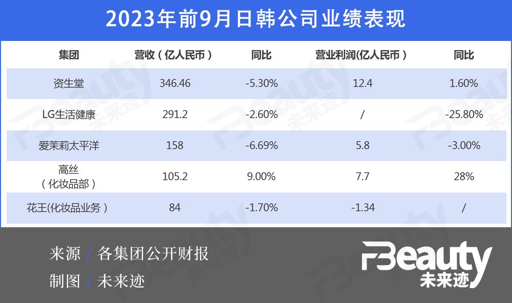 日韓企業(yè)中實(shí)現(xiàn)營(yíng)收、利潤(rùn)雙豐收的高絲集團(tuán),其2023年前九個(gè)月在亞洲市場(chǎng)的銷售額同比下滑了23.2%。財(cái)報(bào)指出主要是由于集團(tuán)在中國(guó)線上渠道銷售額下滑,以及由于對(duì)代購(gòu)的限制導(dǎo)致的旅游零售渠道銷售額下滑。