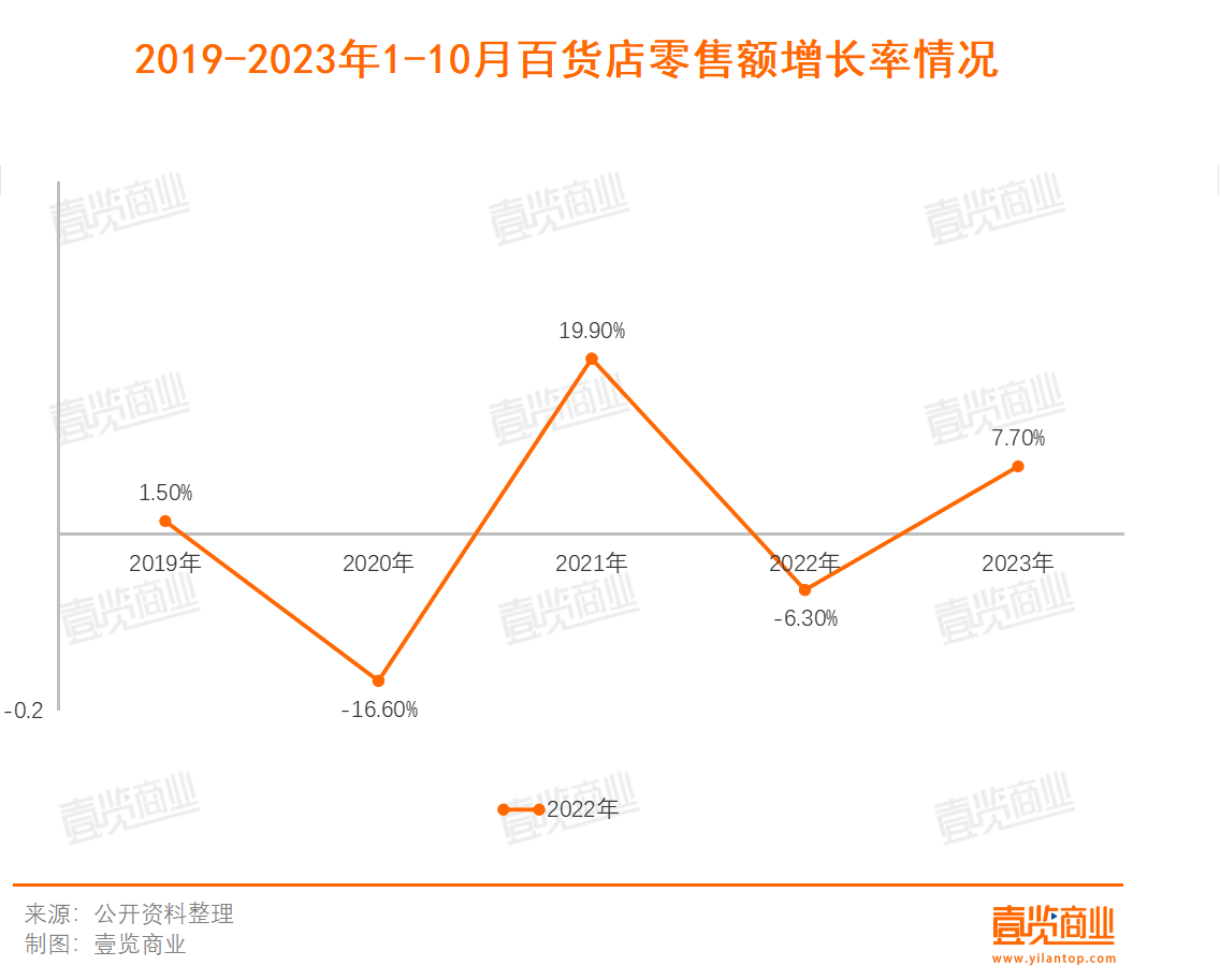 事實上,多年以來,隨著購物中心等大型綜合體的興起,百貨行業(yè)就開始進入陣痛期!2021-2022年中國百貨零售業(yè)發(fā)展報告》信息顯示,從2017年到2020年,中國百貨行業(yè)的零售額增長呈逐年下降趨勢,2020年甚至出現(xiàn)9.8%的負增長。