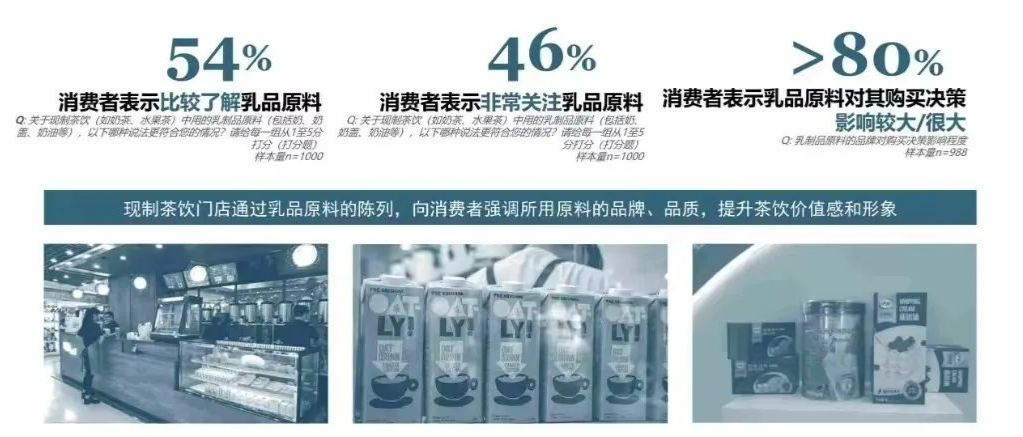 《2022現(xiàn)制奶茶奶原料消費者認知調(diào)查報告》顯示,72.99%的受訪消費者,會特別關(guān)注奶茶的奶原料;72.73%的受訪消費者,希望商家能夠明確告知奶茶中奶原料使用情況。同時,有超過百分之八十的消費者認為乳品原料對其購買決策影響較大。可見,消費者對于健康的重視程度愈發(fā)加深。
