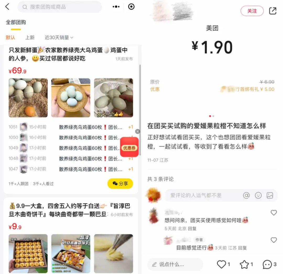 來源/團(tuán)買買小程序截圖(左)小紅書截圖(右)