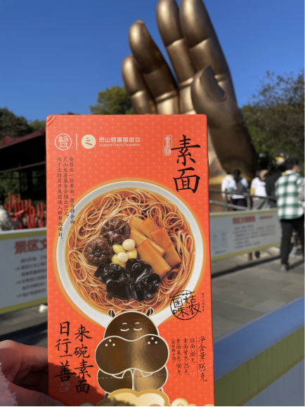 “這款面非常好吃,跟之前在寺廟里吃到的一樣好吃!”,“九塊九一盒,比市場(chǎng)上其他同類產(chǎn)品便宜”,“第一次看到這么方便的素面,不用去寺廟就能吃到了,買面配合捐款,日行一善,來(lái)碗素面,感覺(jué)自己的功德+1了”……