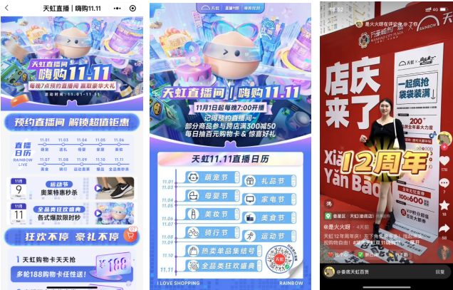 天虹將APP八周年慶與雙11大促結(jié)合,以“元宇宙X數(shù)字藏品盲盒”活動為亮點(diǎn),以超級品類狂歡周為主導(dǎo),持續(xù)為消費(fèi)者提供優(yōu)惠。