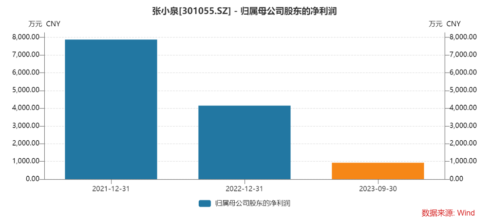 自2021年9月上市以來,張小泉的業(yè)績持續(xù)下降。