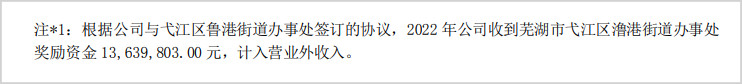 2022年三只松鼠就在營業(yè)外收入這里嘗到甜頭,當(dāng)年其在安徽蕪湖新設(shè)子公司安徽蜀三香食品有限公司,注冊地址安徽省蕪湖市弋江區(qū)蕪湖高新技術(shù)產(chǎn)業(yè)開發(fā)區(qū)科技產(chǎn)業(yè)園13棟2001號,年底財報上三只松鼠就收到了蕪湖戈江區(qū)街道辦事處獎勵的1364萬元,計入“營業(yè)外收入”。