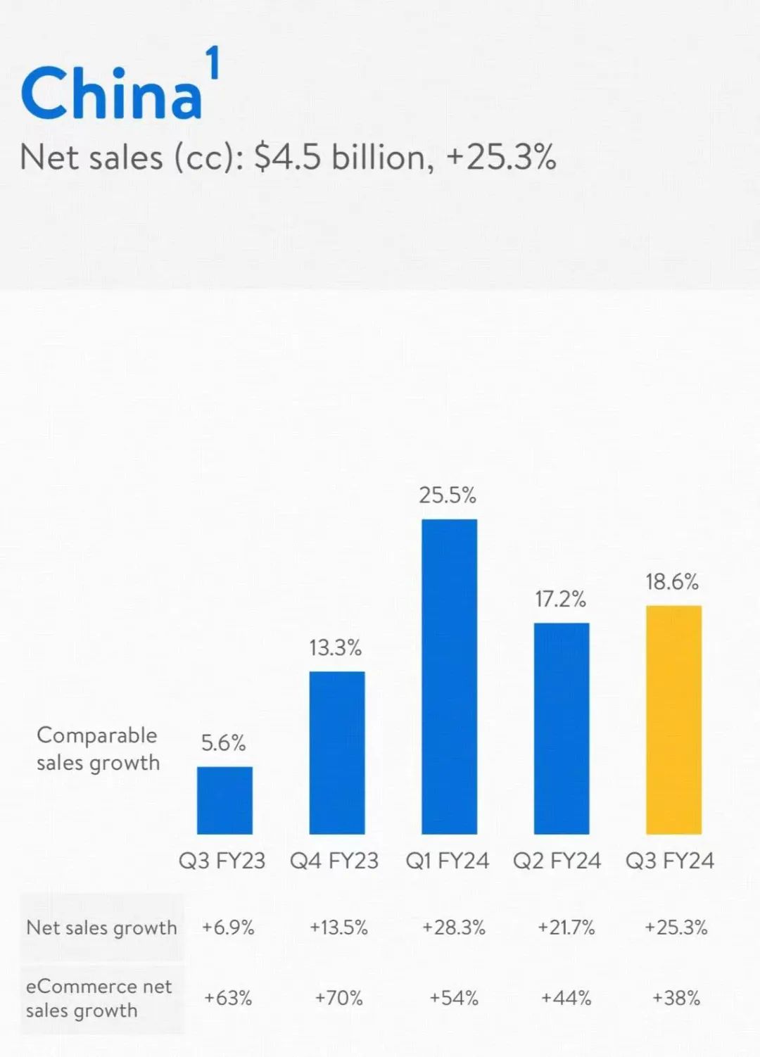 尤其在中國市場,斬獲45億美元營收(約324.5億人民幣),同比增長25.3%。其中,線上業(yè)務(wù)增速達38%,線上滲透率45%。