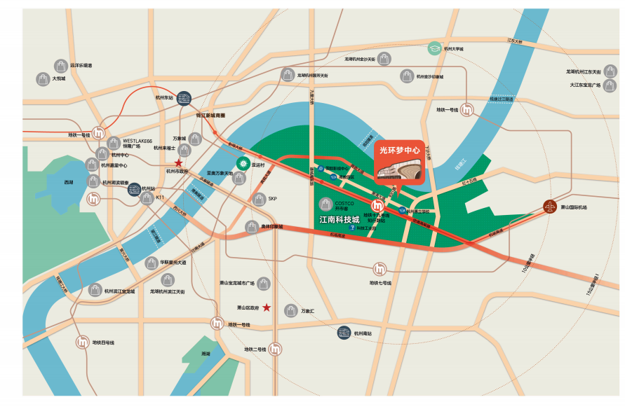 「光環(huán)夢中心」地處江南科技城核心區(qū),這是一個規(guī)劃面積48平方公里的全新科創(chuàng)版圖,是杭州城東智造大走廊上的創(chuàng)新智造核心,也是蕭山國際元素、實體經(jīng)濟和創(chuàng)新能力最為集中、強勁的科技新城。