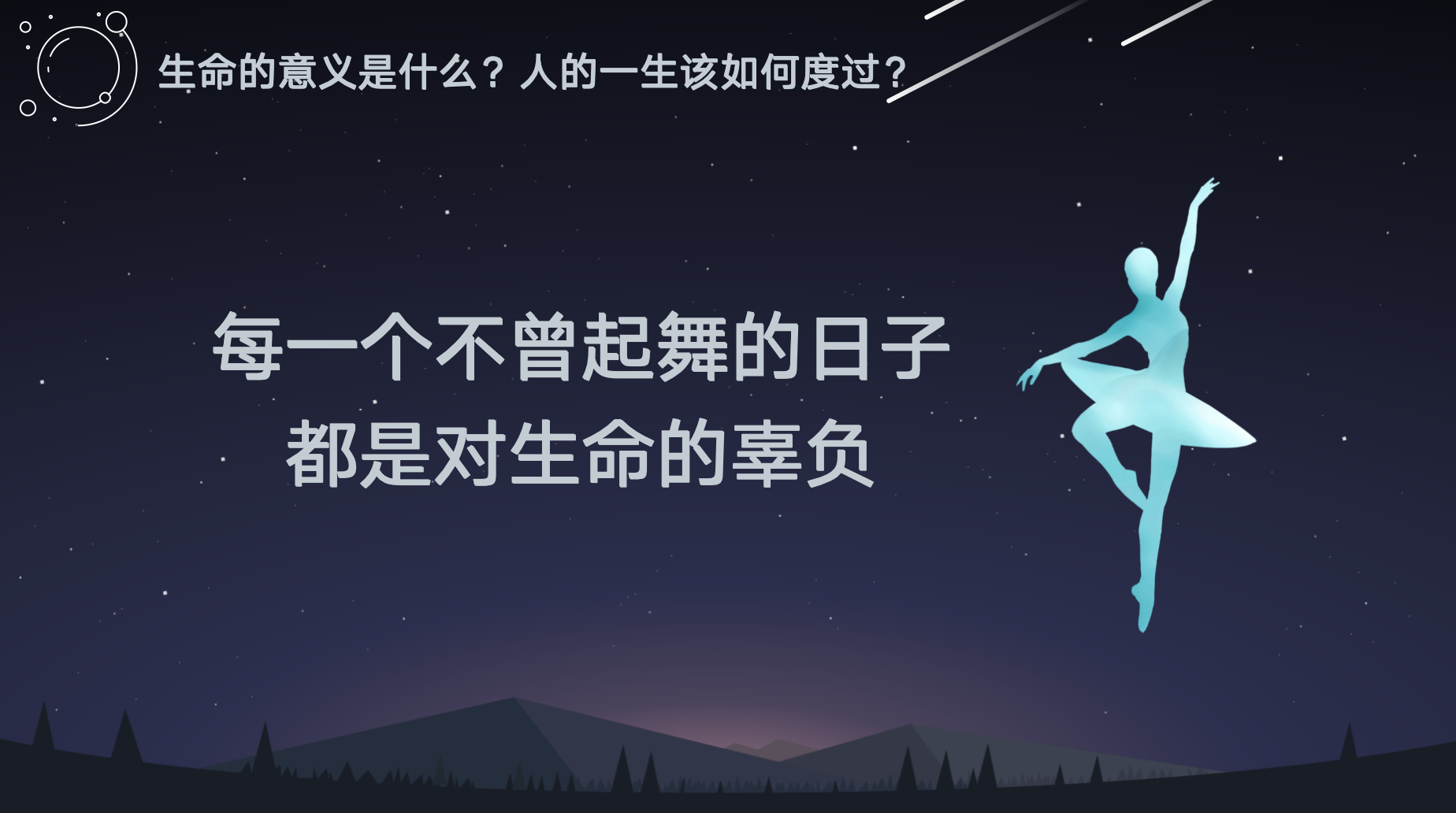 每一個(gè)不曾起舞的日子都是對(duì)生命的辜負(fù),釋放美好,相信是我們一直向往的。但是不知不覺(jué)中社會(huì)的環(huán)境和習(xí)慣、文化把我們帶偏了,活到面子中了,每天都是應(yīng)酬、名利、榮耀,活得太累了。