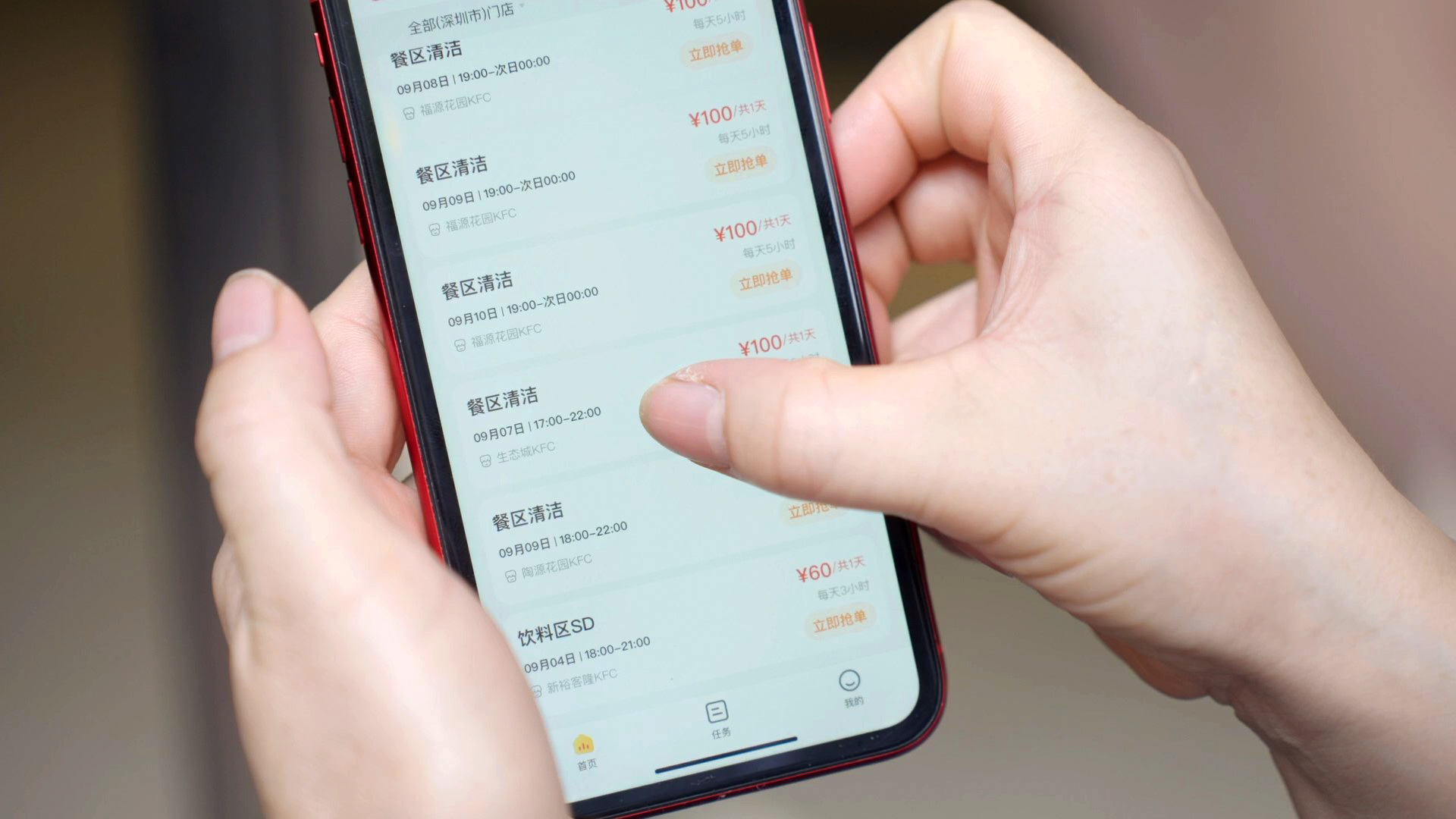 “小活兒”的邏輯是減少全職員工用工時(shí)間,而在用工波峰期間增加小時(shí)工來(lái)輔助完成工作,只要門(mén)店發(fā)布業(yè)務(wù),自由職業(yè)者皆可接單,天虹將這樣的用工方式比作“滴滴打工!