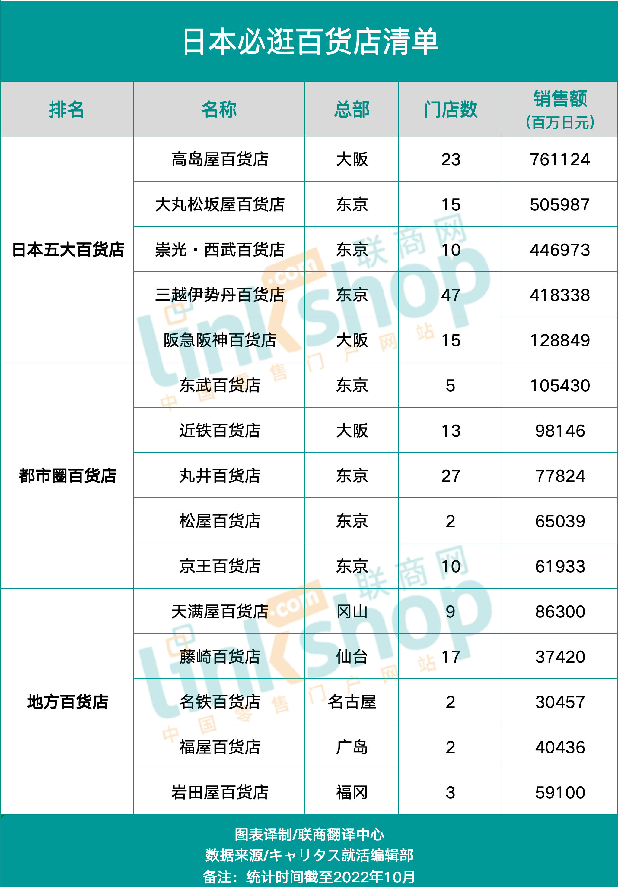 二、門店數(shù)量:15家(阪急百貨店11家、阪神百貨店4家)